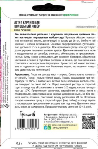 Астра Волшебный Ковер Микс карликовая (Colour Carpet Mix) цв.п 100шт ИП Григорьев